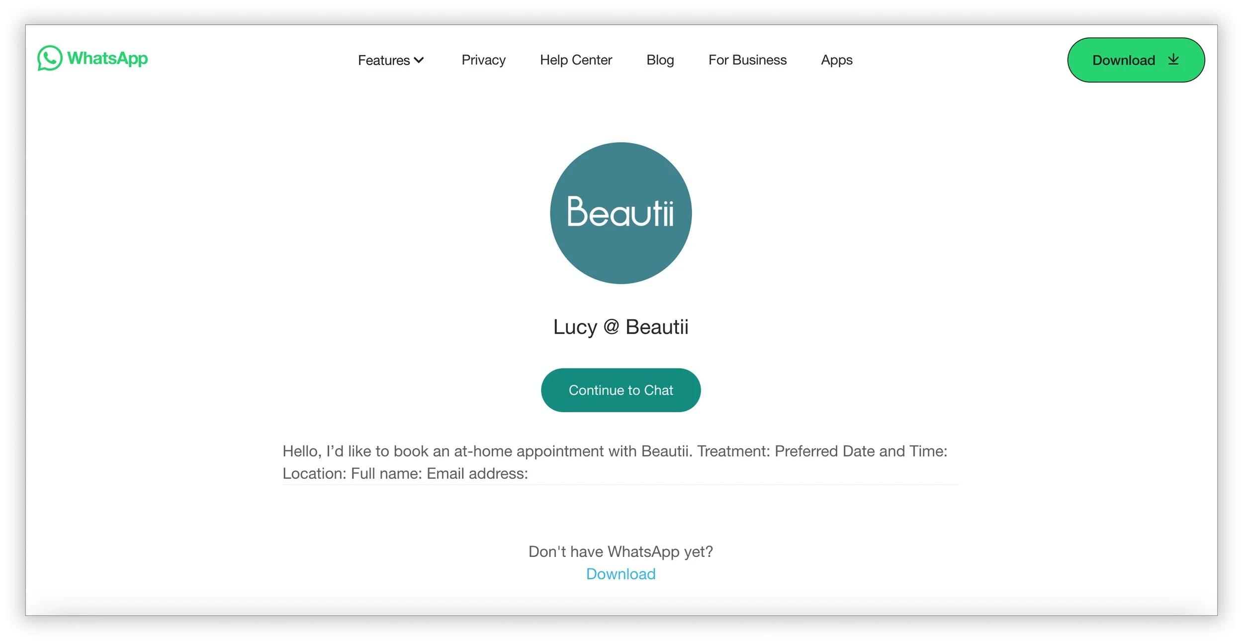 To improve the experience, we replaced the form with an instant WhatsApp chat feature, allowing users to connect directly with Beautii’s concierge team in real time. This change eliminated redundant data entry, reduced response wait times, and made the experience feel more personal and immediate — aligning with Beautii’s luxury, high-touch brand positioning.