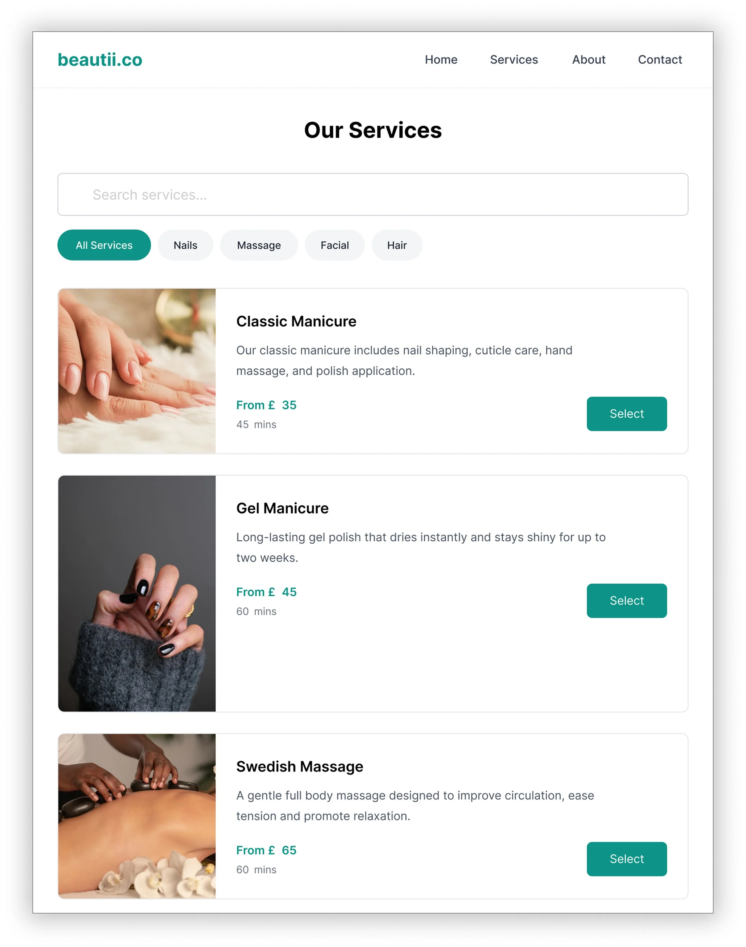 As a small company, Beautii faced both budget and technical limitations. The costs of integrating SimplyBook.me—along with onboarding therapists into the new real-time availability system required a significant investment. Because of this, the business could not afford to implement additional design or functionality changes to the website at this stage.